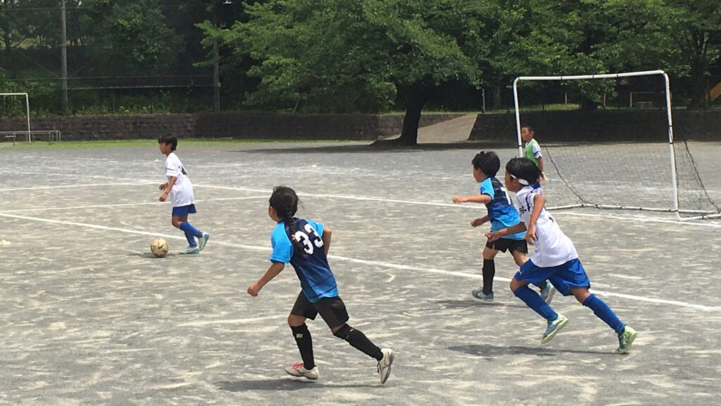 砂川FCは少ないチャンスを見事に得点へつなげ、鑓水SCは最後まで攻め続けて追いつく粘りを見せました。