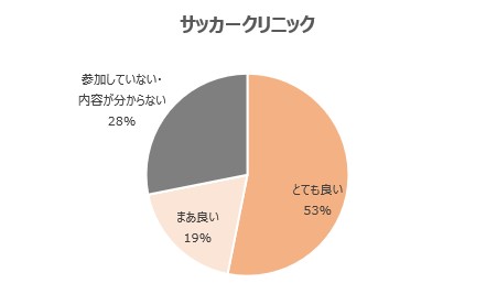 ・選手が主体的に出来る環境作りは良かったと思います。ボールを使わないレクリエーションによって個人参加の息子も打ち解けやすかったと思います。 一転して、サッカークリニックはレベルの違う子供達がたくさん集まってるのに、みんなが超真剣に集中して取り組んでいたので内容的にも非常に良かった思いました。