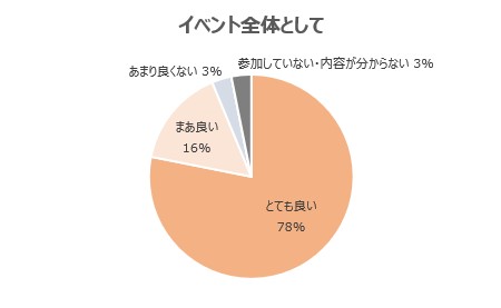 イベント全体としては、「とても良い」が78%、「まあ良い」が16%という結果でした。