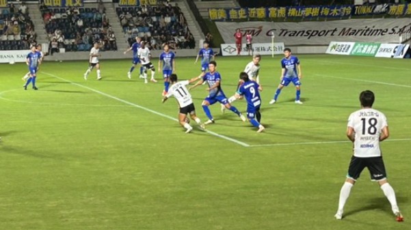 夜は高校生や先生たちと一緒に、里山スタジアムへFC今治の試合観戦へ。